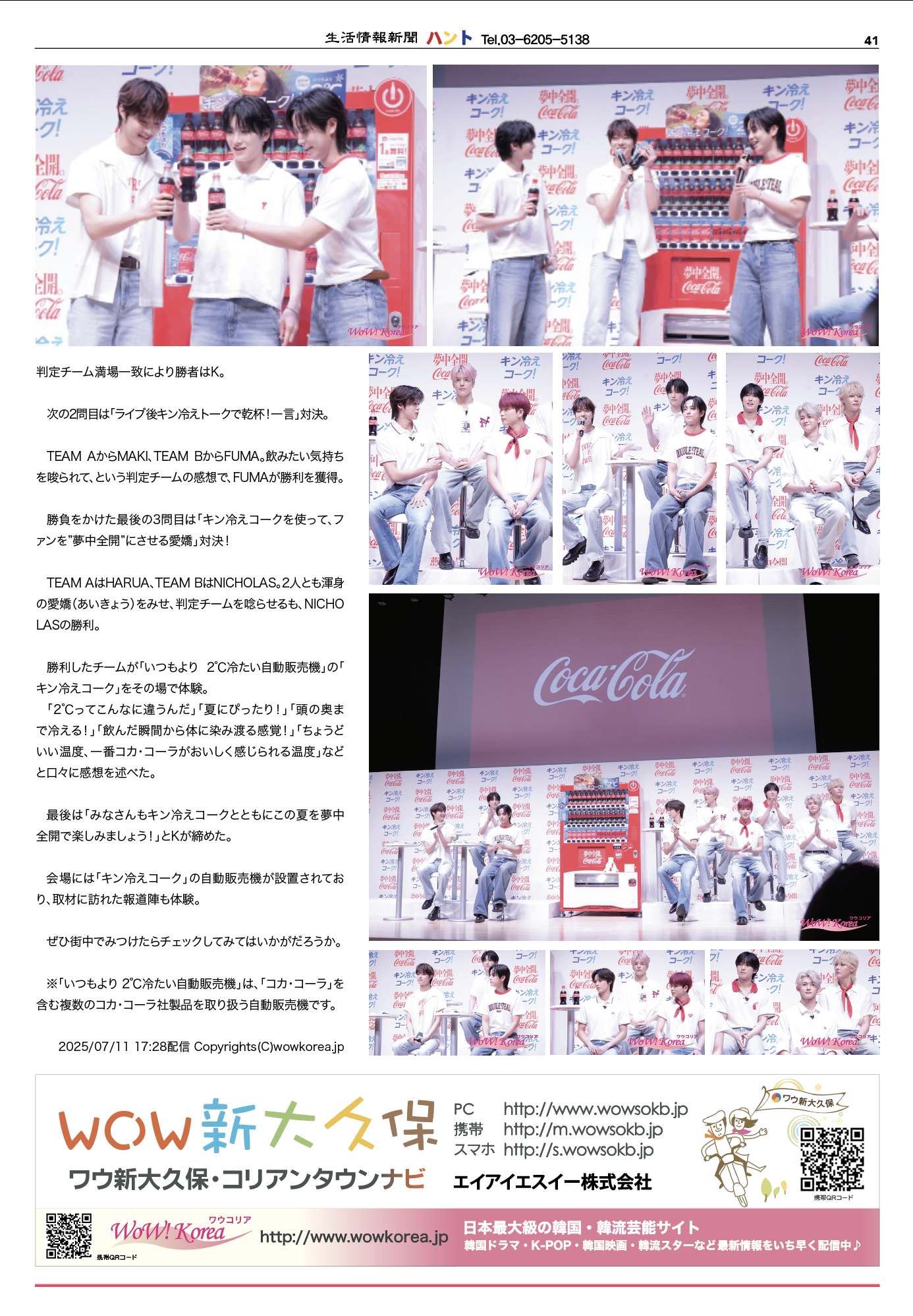 「&TEAM」、コカ・コーラ「いつもより 2°C冷たい自動販売機」体験取材会に登壇 「みなさんもキン冷えコークとともにこの夏を夢中全開で楽しみましょう!」