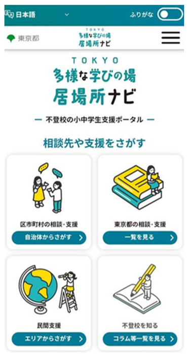 포털 사이트 **「TOKYO 다양한 배움의 장·머무를 곳 내비 ― 부등교 초·중학생 지원 포털 ―」**을 새롭게 개설합니다.