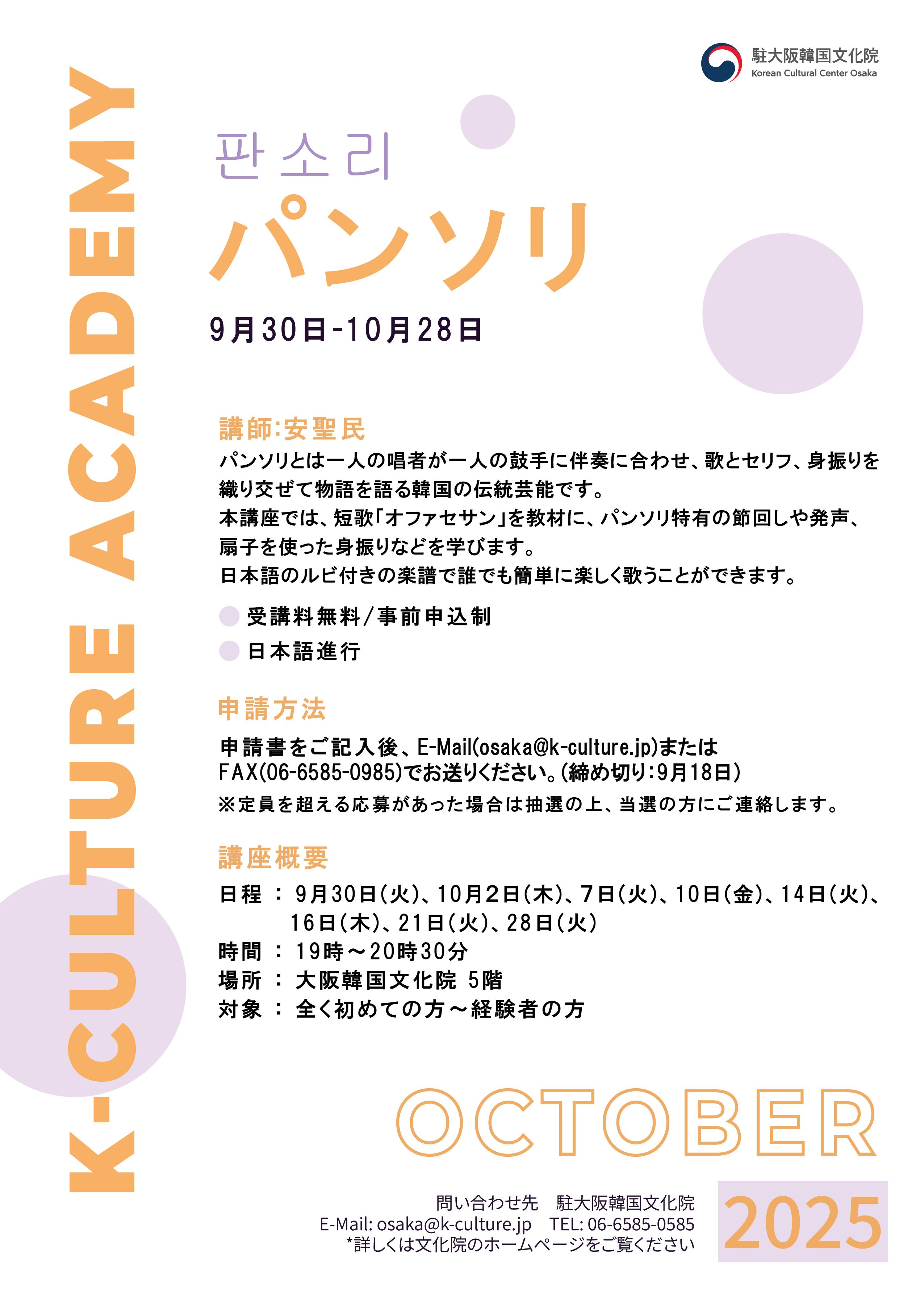 자세한 내용은 오사카 한국문화원 홈페이지에서 확인 하실 수 있습니다.