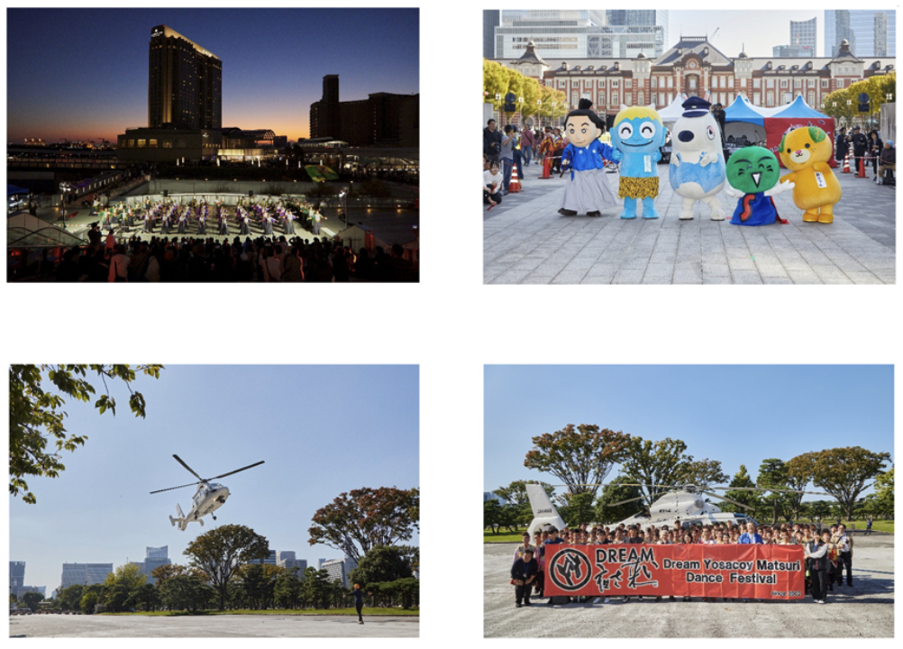 「오다이바 Dream 프로젝션 매핑 featuring 제24회 드림 요사코이 축제」에서의 요사코이 연무 등과의 콜라보, 사상 최초로 「가부키×애니메이션×축제」를 테마로 한 야외 3D 홀로그램 쇼 ‘에도 도쿄 프리미엄 나이트’의 실시, 무료 관람 및 정통 요사코이 나루코 춤 강습회의 무료 비참가 체험에 더하여, 「VIP 촬영 특별석」 등의 유료 관람석도 설치, 전 세계에서의 원격 관람 체험으로서, 마루노우치 회장에서의 YouTube 라이브 방송, FNS 자선 캠페인과의 특별 콜라보 라이브 등을 예정하고 있습니다.