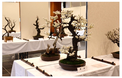 개화를 시작한 매화 분재를 비롯해 일본의 전통 원예식물을 전시합니다.
