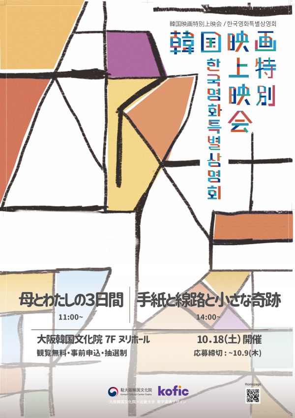 주오사카한국문화원에서는 한국 영화의 다양한 매력을 즐기실 수 있는 특별 기획 **「한국 영화 특별 상영회」**를 10월에도 개최합니다.